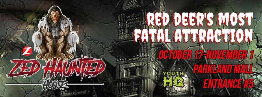 Red Deer’s Most Fatal Attraction, the Zed Haunted House presented by Border Paving, is returning to Parkland Mall this fall! The always anticipated attraction will open on October 17th and run its final showing on Saturday, November 1st. Get ready for new scares, a new layout, and classic spooks. This is the primary fundraising event in support of BGC Red Deer & District. Youth HQ and the Zed Haunted House committee invite anyone looking for a terrifying and memorable experience to come check it out.